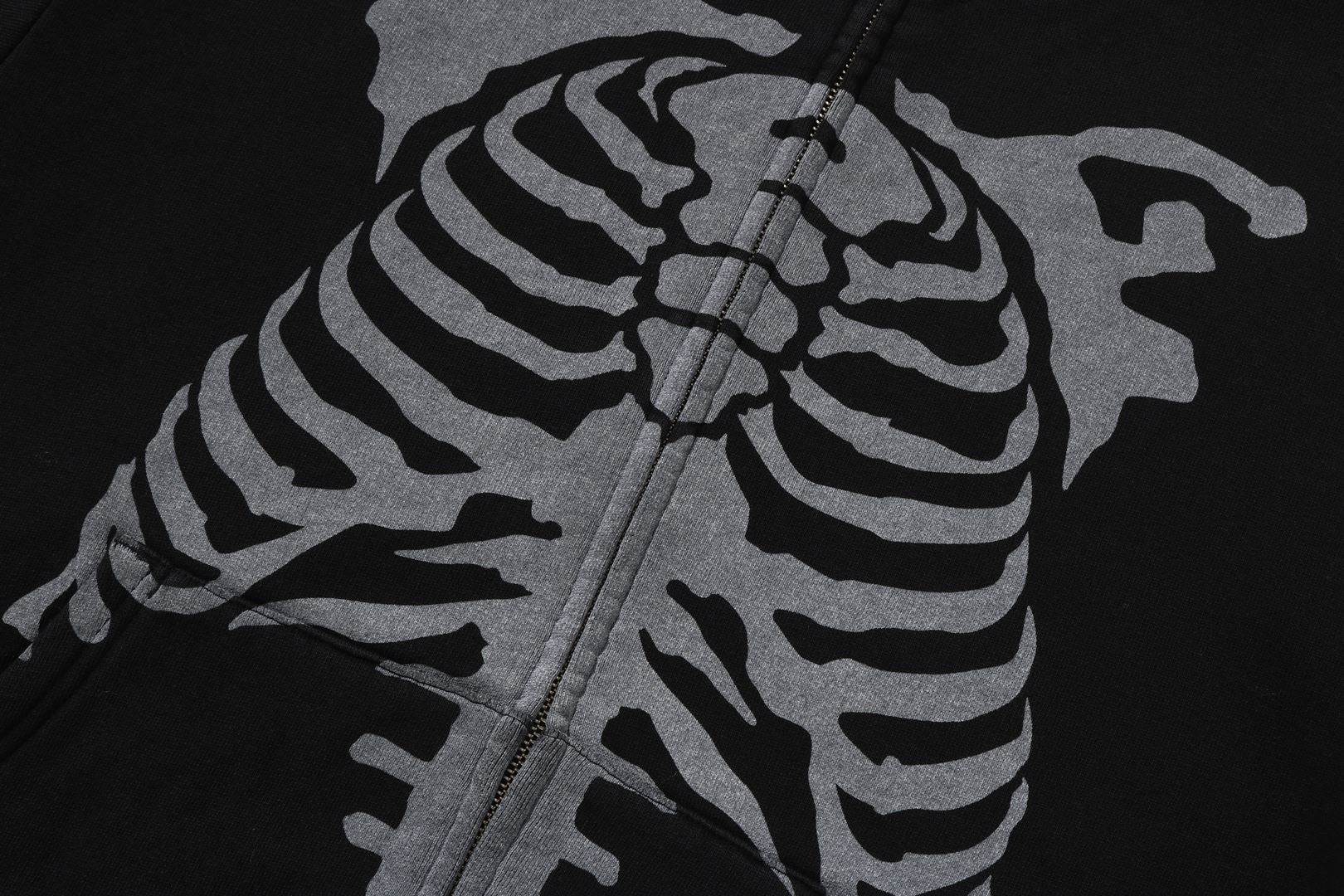 SKELETON SHARK HEAVY WASHED CROPPED FIT FULL ZIP HOODIE