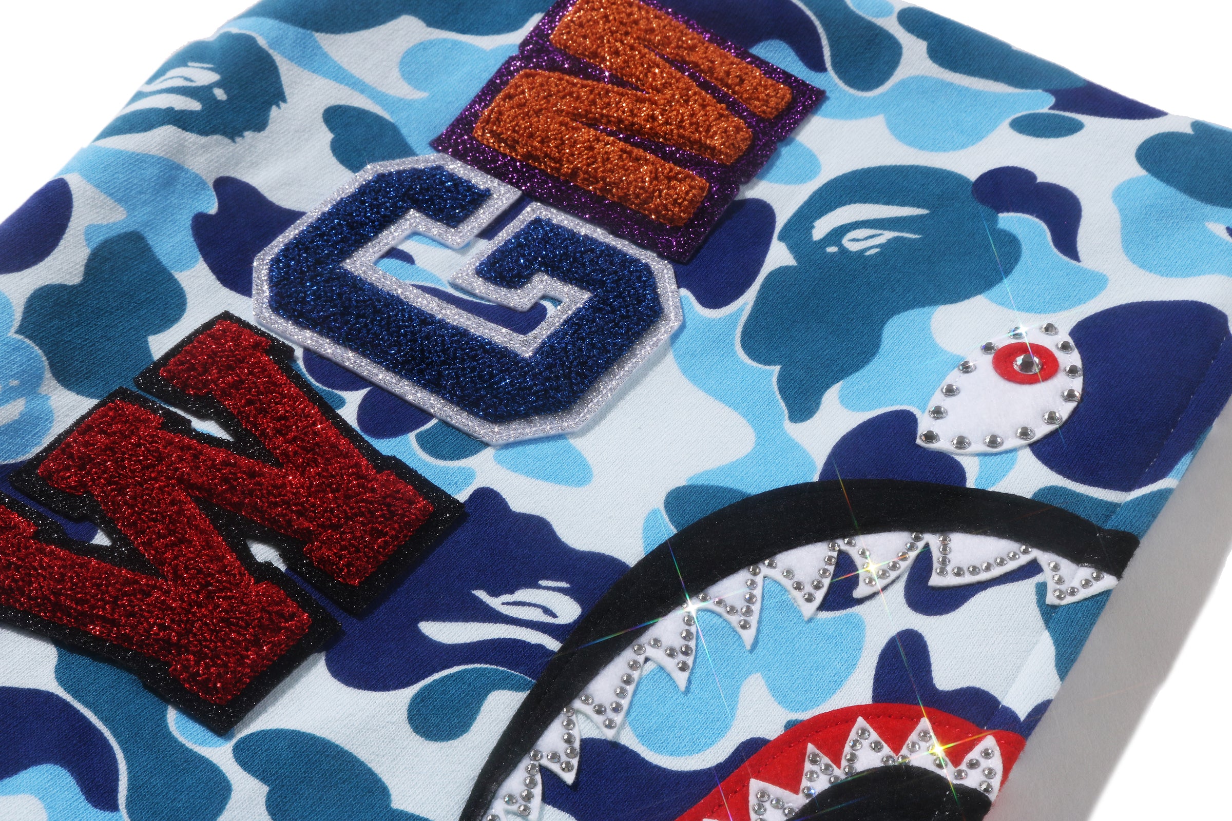 ABC CAMO CRYSTAL STONE SHARK CROPPED FULL ZIP HOODIE LADIES