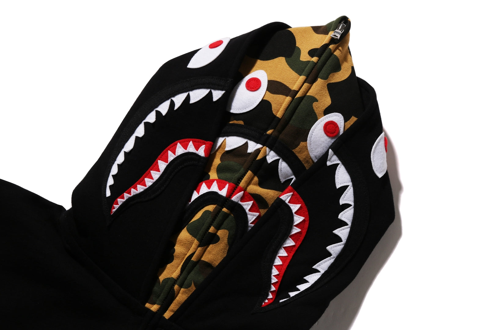 The 1ST CAMO SHARK FULL ZIP DOUBLE HOODIE for ladies combines distinctive style with practical design. Featuring a full zip closure and a unique double hood, this hoodie offers versatile layering and enhanced comfort. Its signature camo shark pattern adds a bold, urban edge, making it an ideal choice for those seeking both fashion and functionality in their outerwear.