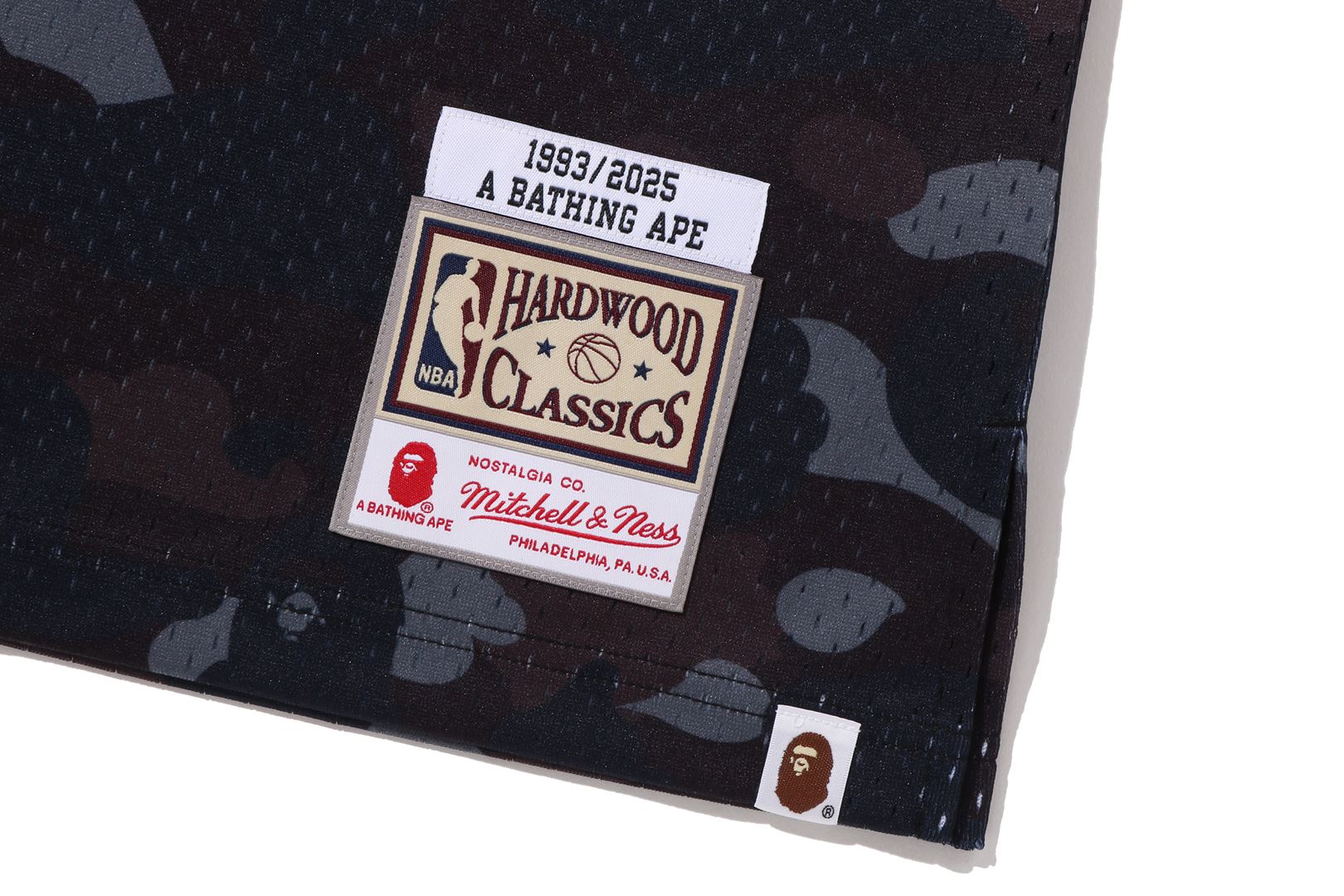 The jerseys and shorts are crafted in the authentic Swingman style, showcasing meticulous attention to detail that mirrors official team uniforms. Each piece prominently features BAPE®’s signature CAMO pattern, thoughtfully rendered in the respective team colors, complemented by exclusive graphics and patches that seamlessly merge the team logos with the iconic APE HEAD.