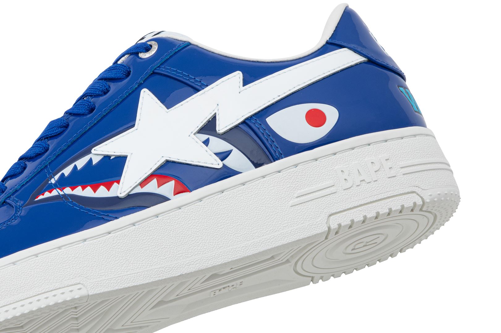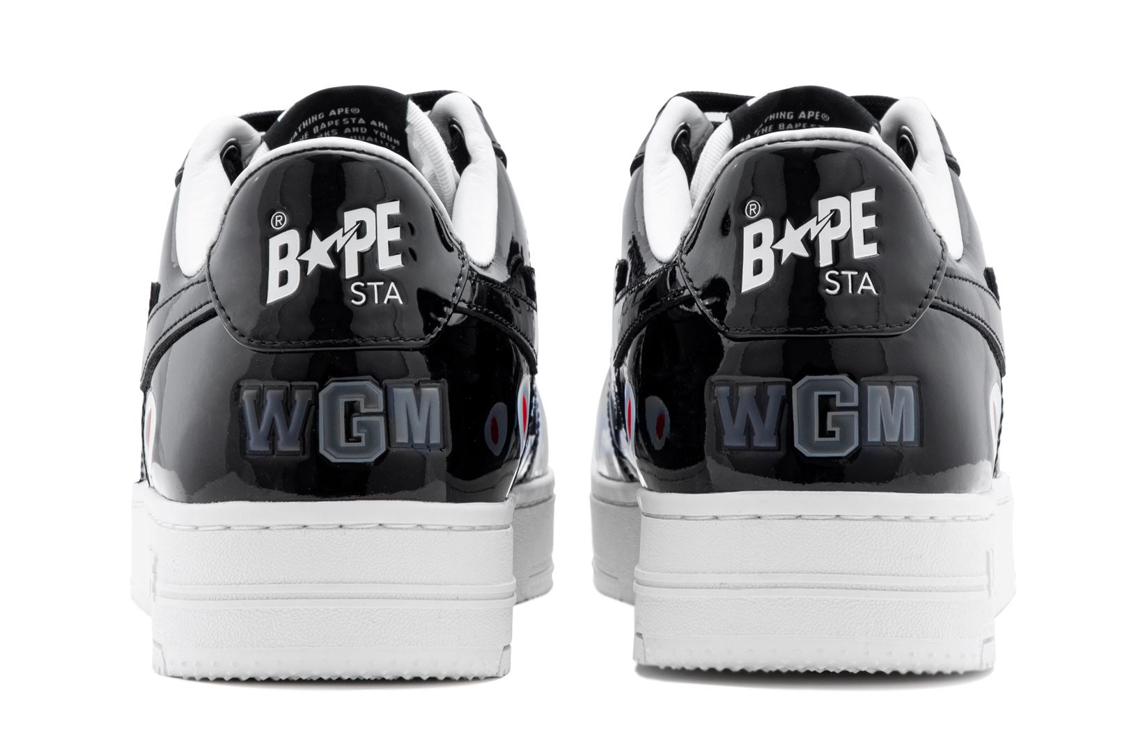 This release signals a bold evolution: the silhouette is fully rendered in glossy patent leather, elevating its striking aesthetic while preserving the iconic shark face motif that wraps both sides beneath the STA logo — a fearless design that fuses BAPE® heritage with modern shine.